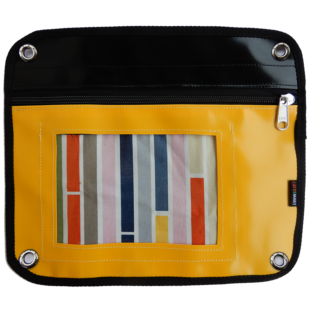 Material: UpCycling-Material oder Verschnittreste aus Planentaschen-Produktionen sowie Stoffreste-Muster.